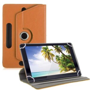TGK 360 Degree Rotating Leather Rotary Swivel Stand Case Cover for iBall Elan 3×32 10.1 inch Tablet (Orange)