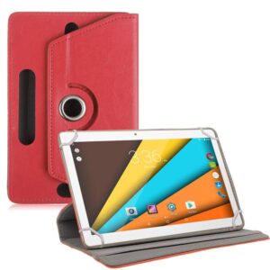 TGK Universal 360 Degree Rotating Leather Rotary Swivel Stand Case Cover for Swipe Slate Plus 10 inch Tablet (Red)