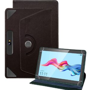 TGK Universal 360 Degree Rotating Leather Rotary Swivel Stand Case for TCL Tab 10s 10.1 inches Tablet (Brown)