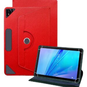 TGK Universal 360 Degree Rotating Leather Rotary Swivel Stand Case for TCL Tab 10s 10.1 inches Tablet (Red)
