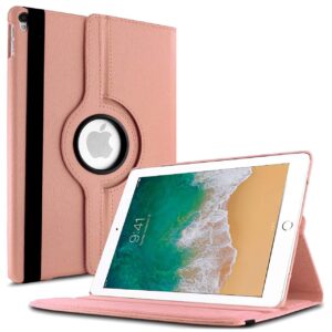 TGK 360 Degree Rotating Leather Auto Sleep Wake Function Smart Case Cover for iPad Air 2 Covers ipad 9.7 inch A1566, A1567 (2014 Launch) Rose Gold