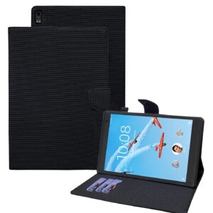 TGK Dotted Smart Leather Wallet Folio Stand Case with Pencil Holder Flip Cover for Lenovo Tab E8 TB-8304F, TB-8304F1, TB-8304N, TB-8304 (8.0 Inch) Tablet with Stylus Pen Holder – Black