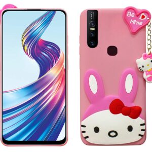 TGK Kitty Mobile Covers, Silicone Back Case Compatible for Vivo V15 Cover (Pink)