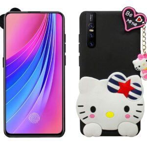 TGK Kitty Mobile Covers, Silicone Back Case Compatible for ViVO V15 Pro Cover (Black)