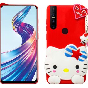 TGK Kitty Mobile Covers, Silicone Back Case Compatible for ViVO V15 Pro Cover (Red)