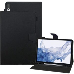 TGK Leather Flip Stand Case Cover for Samsung Galaxy Tab S8 | S7 (5G/LTE) 11 inch with Stylus Holder, Black