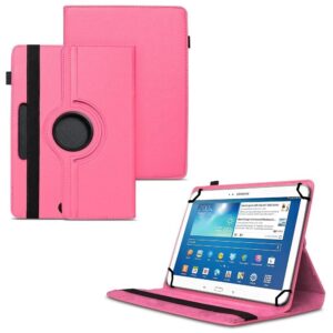 TGK 360 Degree Rotating Universal 3 Camera Hole Leather Stand Case Cover for Samsung Galaxy Tab 3 10.1 inch GT-P5210 GT-P5200 GT-P5220 – Hot Pink