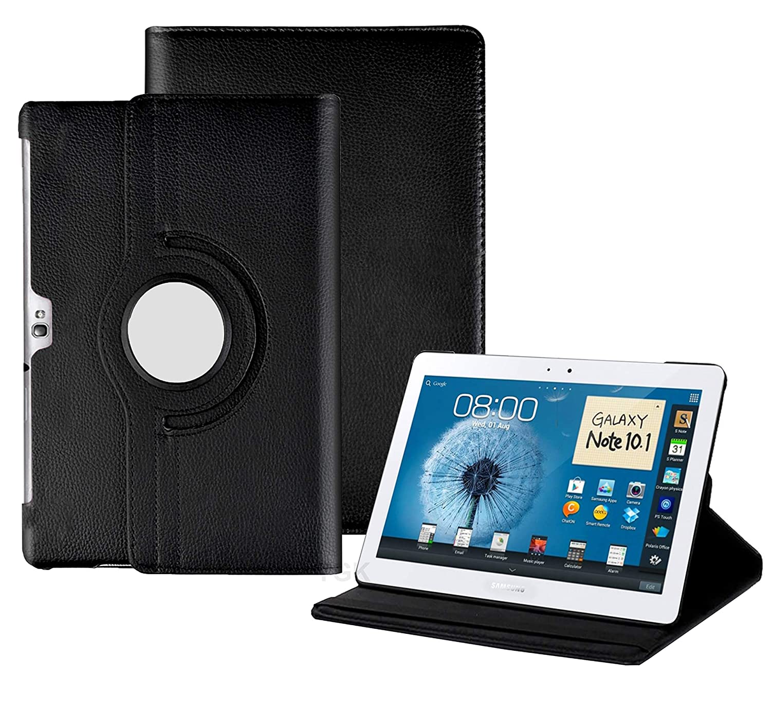 TGK 360 Degree Rotating Leather Smart Rotary Swivel Stand Case Cover for Samsung Galaxy Note 10.1 (2012 Edition) Tablet GT-N8000 GT-N8010 GT-N8020 GT-N800 GT-N8013 GT-N8005 (Black)