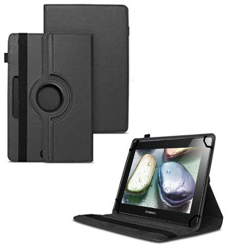 TGK 360 Degree Rotating Universal 3 Camera Hole Leather Stand Case Cover for Lenovo IdeaTab S6000H 10 inch – Black