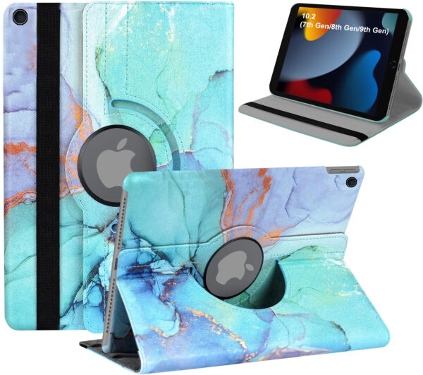 Exclusively designed for New 10.2-inch iPad 9th / 8th / 7th Generation (2021/2020/2019 released) [Fit iPad Models: A2602 / A2603 / A2604 / A2605 / A2270 / A2428 / A2429 / A2430 / A2197 / A2198 / A2200], NOT compatible with any other iPad models. Please check back bottom of your iPad to find the model number “Axxxx” before purchase. 360 Degrees Feature : 360 degrees rotating swivel allows the iPad 10.2 inch 9th / 8th / 7th Generation to rotate both flexible vertically and horizontally while in the case. Perfect Cutouts : Perfect fit your iPad 10.2 inch 9th / 8th / 7th Generation, easy access to all features, jacks, camera & other ports without removing the Rotating Flip case. Elastic band holds iPad 10.2 inch 9th / 8th / 7th Generation closed securely while on the go. Stand-fold design : Stand-fold design is super convenient for providing different viewing angles when watching videos, texting, gaming or learning etc.