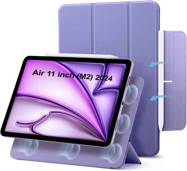 Trifold Magnetic Case for iPad air 11-inch M2 2024 (model number: A2902 A2903 A2904) / iPad Air 5th Generation 10.9 Inch 2022 (A2589 A2591 A2588) / iPad Air 4th Gen 10.9 Inch 2020 (A2316 A2324 A2325 A2072). Not compatible with any other devices. Please check back bottom of your iPad to find the model number. Magnetic Attachment : – Built-in Strong Magnetic back cover attaches itself firmly to the iPad Air 11 inch M2 2024 Provide protection for your iPad Air 11 inch M2 2024. Professional Design : – One-piece design ensures that your iPad Air 11 inch M2 2024 fits securely while keep the original lightweight state. Soft microfiber lining protect your iPad Air 11 inch M2 2024 screen from scratch daily use. Dual Angle : – Our Magnetic case for iPad Air 11 inch M2 2024 provides 2 angle brackets, 65° video viewing position & 35° typing position, to meet your iPad Air 11 inch M2 2024 needs. Free your hands for other entertainment activities. Definitely a perfect choice of iPad Air 11 inch M2 2024 case for you. Auto-Wake/Sleep : – This iPad Air 11 inch M2 2024 Magnetic case has an auto-wake/sleep function that automatically wakes up or puts your iPad Air 11 inch M2 2024 to sleep when the cover is opened and closed. Stand-fold design is super convenient for providing different viewing angles when watching videos, texting, gaming or learning etc.