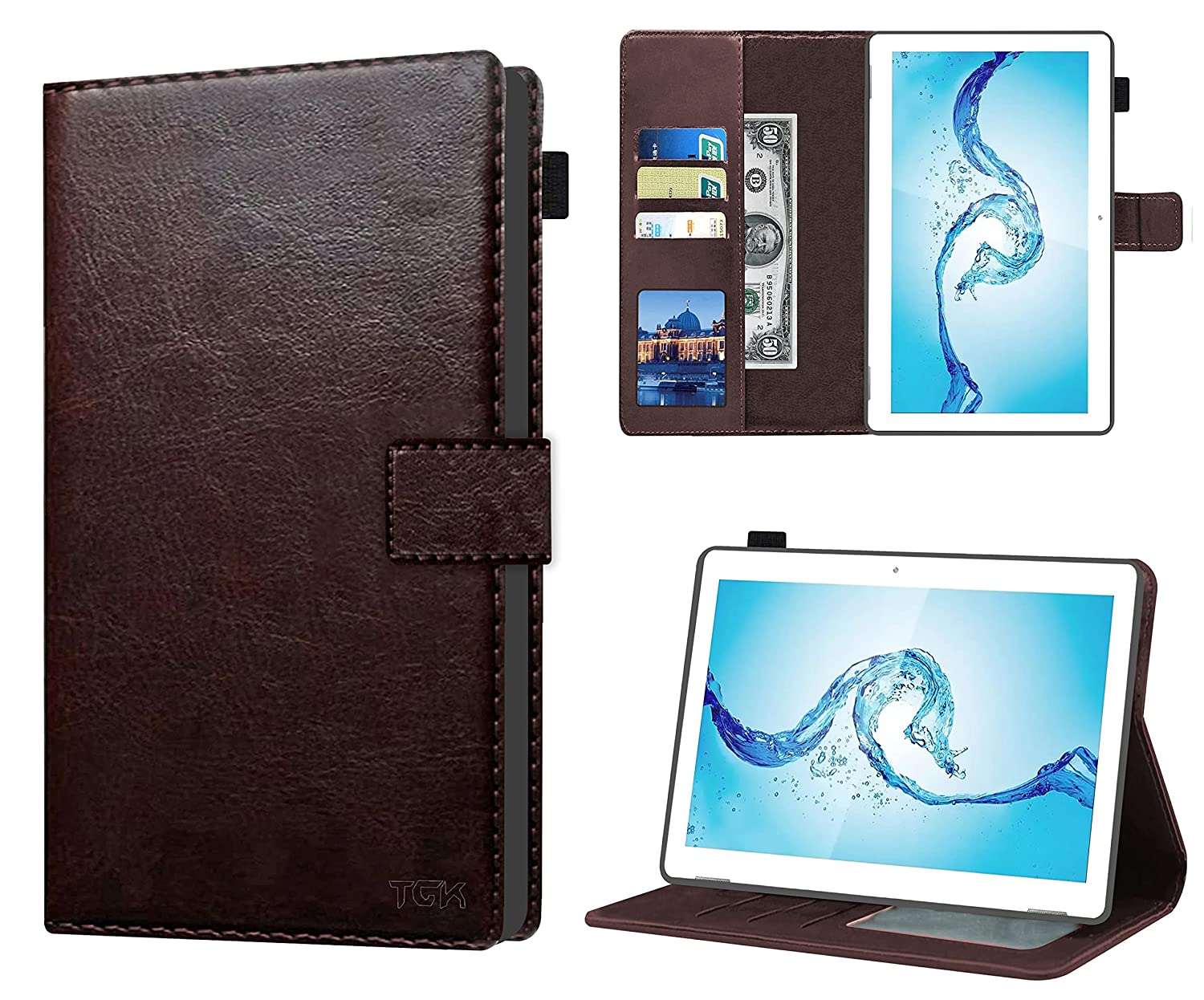 TGK Multi Protective Leather Case with Viewing Stand and Card Slots Flip Cover for Acer One 10 T8-129L Tablet 10.1 Inch (Dark Brown)