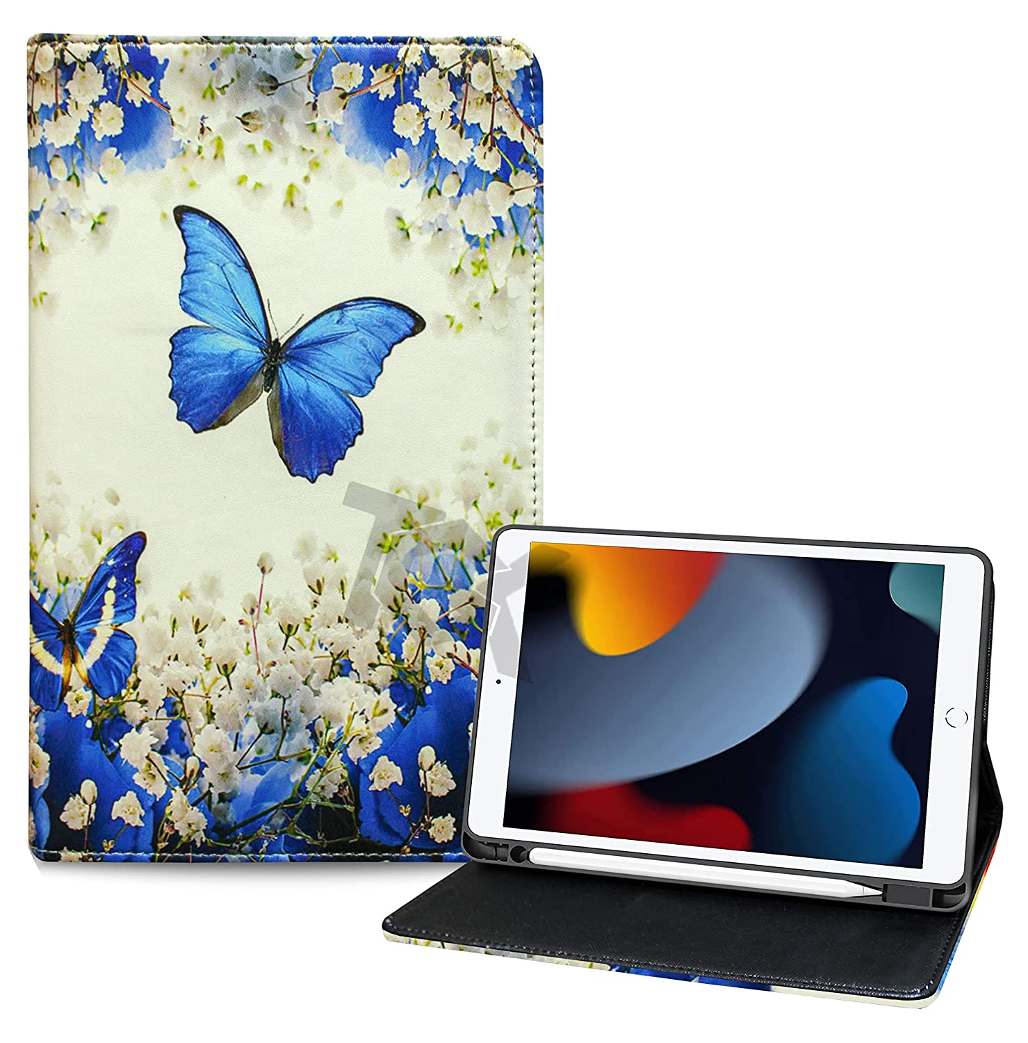 [Compatibility] Designed for iPad 10.2 inch 2021/2020/2019 (9th/8th/7th) Model. Fits iPad Models: A2602/A2603/A2604/A2605/A2197/A2198/A2200/A2270/A2428/A2429/A2430. Please check back bottom of your iPad to find the model number. [Protection]: hard back shell provide perfect protection for your Tab from knocks, dust, damage and scratches. The outer layer of cover is made of leather with an effective touch. Inside is the TPU silicone back cover, which gives tight protection to the tablet. [SMART STAND COVER] – Stand-fold design is super convenient for providing different viewing angles when watching videos, texting, gaming or learning etc. [PRECISE OPENINGS] – Easy Access to All Buttons. Ultra compact and precisely cut to preserve full access to all buttons without taking off the case like charging, listening to music, videos etc. [Easy to Carry]: slim, lightweight, can be carried alone, or slipped into a briefcase, backpack or any other bag, ideal for business, school or travel.