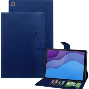 TGK Multi-Angle Viewing Smart Stand with Document Card Pocket Wallet Leather Flip Case Cover for Lenovo Tab M10 HD 2nd Gen TB-X306X / Smart Tab M10 HD 2nd Gen TB-X306F (Dark Blue)