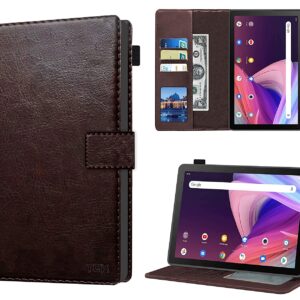 TGK Multi-Angle Viewing Smart Stand with Document Card Pocket Wallet Leather Flip Case Cover for Lenovo Tab M10 HD 2nd Gen TB-X306X / Smart Tab M10 HD 2nd Gen TB-X306F (Dark Brown)