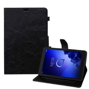 TGK Multipurpose Smart Stand Flip Leather Cover with Silicone Back Case Compatible for Alcatel 3T 10 (10 inch) 2019 Released (Black)