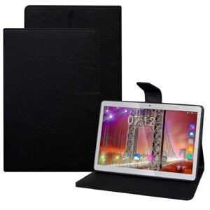 TGK Plain Design Leather Folio Flip Case with Viewing Stand Protective Cover for Fusion5 4G Tablet 10.1 Inch (25.65 cm) (Black)