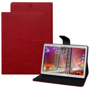 TGK Plain Design Leather Folio Flip Case with Viewing Stand Protective Cover for Fusion5 4G Tablet 10.1 Inch (25.65 cm) (Red)