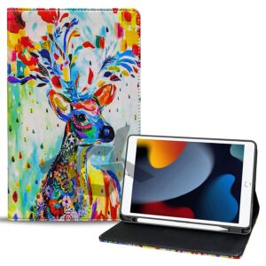 TGK Printed Classic Design Leather Folio Flip Case with Viewing Stand Protective Cover for iPad 10.2 Cover 2021/2020/2019 (iPad 9th Generation / 8th Gen / 7th Gen) (Deer-Painting)