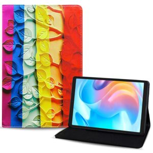 TGK Printed Classic Design Leather Folio Flip Case with Viewing Stand Protective Cover for Realme Pad Mini 3 / Realme Pad Mini 4 8.68 inch Tablet (Leaf Pattern)