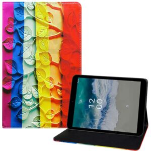 TGK Printed Classic Design with Viewing Stand Leather Flip Case Cover for Nokia Tab T10 8 inch Tablet TA-1472 (Leaf Pattern)
