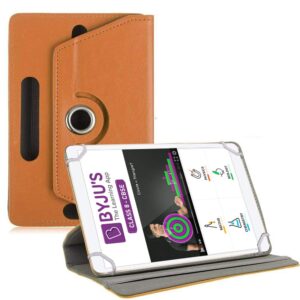 TGK Universal 360 Degree Rotating Leather Rotary Swivel Stand Case Cover for Byju Learning Tab 10 inch Tablet – Orange