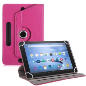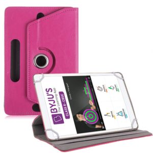 TGK Universal 360 Degree Rotating Leather Rotary Swivel Stand Case Cover for Byju Learning Tab 10 inch Tablet – Hot Pink