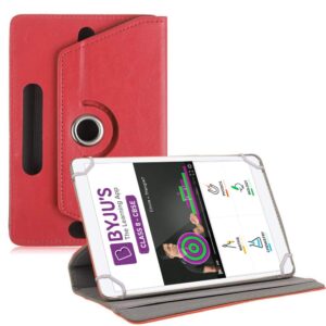 TGK Universal 360 Degree Rotating Leather Rotary Swivel Stand Case Cover for Byju Learning Tab 10 inch Tablet – Red