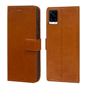 TGK 360 Degree Protection | Protective Design Leather Wallet Flip Cover with Card Holder | Photo Frame | Inner TPU Back Case Compatible for Vivo V20 (Brown)
