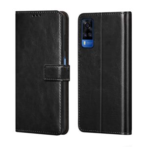 TGK 360 Degree Protection | Protective Design Leather Wallet Flip Cover with Card Holder | Photo Frame | Inner TPU Back Case Compatible for Vivo Y20 / Y20i (Black)