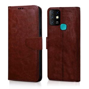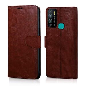 TGK 360 Degree Protection Protective Design Leather Wallet Flip Cover with Card Holder Photo Frame Inner TPU Back Case Compatible for Infinix Hot 9 / Hot 9 Pro (Brown)