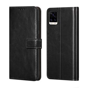 TGK 360 Degree Protection | Protective Design Leather Wallet Flip Cover with Card Holder | Photo Frame | Inner TPU Back Case Compatible for Vivo V20 (Black)