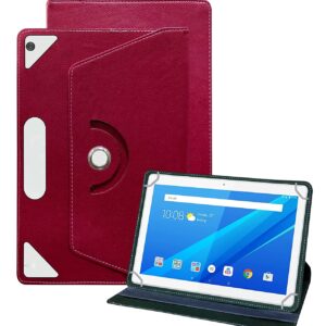 TGK Universal 360 Degree Rotating Leather Rotary Swivel Stand Case Cover for Lenovo Tab M10 FHD 3rd Gen 10.1 inch (Wine-Red)