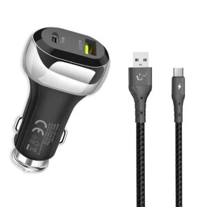 Vali-CC17 Dual QC3.0-PD Rapid Car Charger Adapter with 36W Qualcomm Quick Charge, Universal Compatibility & Free Type-C Cable (Multicolor)