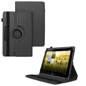 TGK 360 Degree Rotating Universal 3 Camera Hole Leather Stand Case Cover for Acer Iconia Tab A210-10g16u 10.1-Inch Tablet – Black