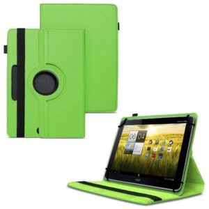 TGK 360 Degree Rotating Universal 3 Camera Hole Leather Stand Case Cover for Acer Iconia Tab A210-10g16u 10.1-Inch Tablet – Green
