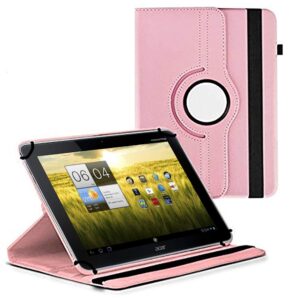 TGK 360 Degree Rotating Universal 3 Camera Hole Leather Stand Case Cover for Acer Iconia Tab A210-10g16u 10.1-Inch Tablet – Light Pink
