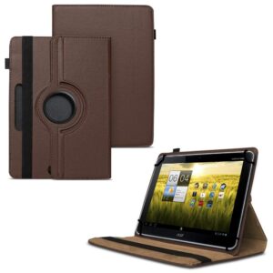TGK 360 Degree Rotating Universal 3 Camera Hole Leather Stand Case Cover for Acer Iconia One B3-A20 10 inch Tablet – Brown