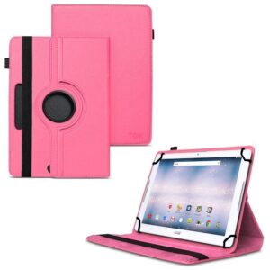 TGK 360 Degree Rotating Universal 3 Camera Hole Leather Stand Case Cover for Acer ONE 10 T4-129L Tablet 10 inch – Hot Pink