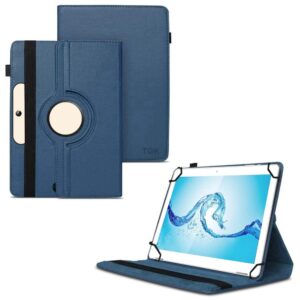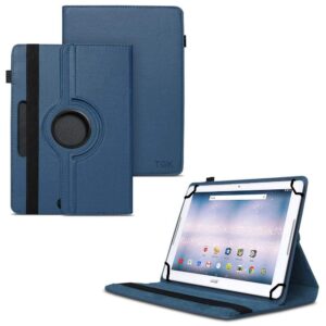TGK 360 Degree Rotating Universal 3 Camera Hole Leather Stand Case Cover for Acer One 10 T8-129L Tablet 10.1 Inch (Dark Blue)