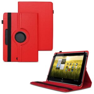 TGK 360 Degree Rotating Universal 3 Camera Hole Leather Stand Case Cover for Acer Iconia Tab A210-10g16u 10.1-Inch Tablet – Red