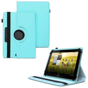 TGK 360 Degree Rotating Universal 3 Camera Hole Leather Stand Case Cover for Acer Iconia Tab A210-10g16u 10.1-Inch Tablet – Sky Blue