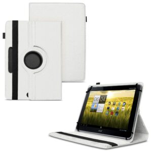 TGK 360 Degree Rotating Universal 3 Camera Hole Leather Stand Case Cover for Acer Iconia Tab A210-10g16u 10.1-Inch Tablet – White
