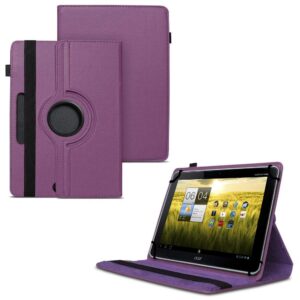 TGK 360 Degree Rotating Universal 3 Camera Hole Leather Stand Case Cover for Acer Iconia Tab A210-10g16u 10.1-Inch Tablet – Purple