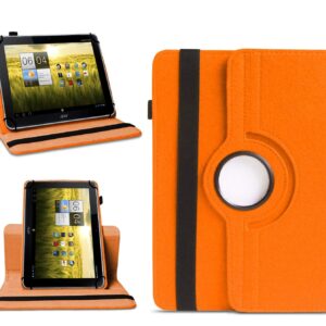 TGK 360 Degree Rotating Universal 3 Camera Hole Leather Stand Case Cover for Acer Iconia Tab A210-10g16u 10.1-Inch Tablet – Orange