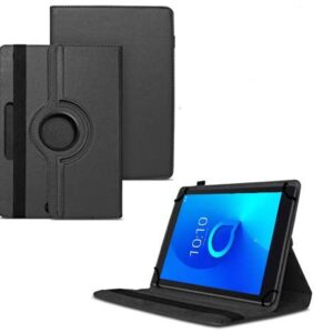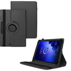 TGK 360 Degree Rotating Universal 3 Camera Hole Leather Stand Case Cover for Alcatel 1T 10 inch Tablet – Black