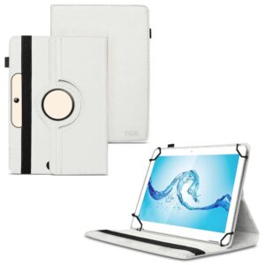 TGK 360 Degree Rotating Universal 3 Camera Hole Leather Stand Case Cover for Acer One 10 T8-129L Tablet 10.1 Inch (White)