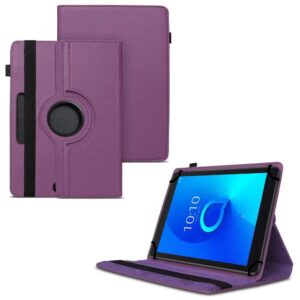TGK 360 Degree Rotating Universal 3 Camera Hole Leather Stand Case Cover for Alcatel 1T 10 inch Tablet – Purple