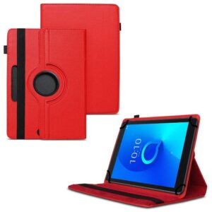 TGK 360 Degree Rotating Universal 3 Camera Hole Leather Stand Case Cover for Alcatel 1T 10 inch Tablet – Red