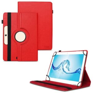 TGK 360 Degree Rotating Universal 3 Camera Hole Leather Stand Case Cover for Acer One 10 T8-129L Tablet 10.1 Inch (Red)